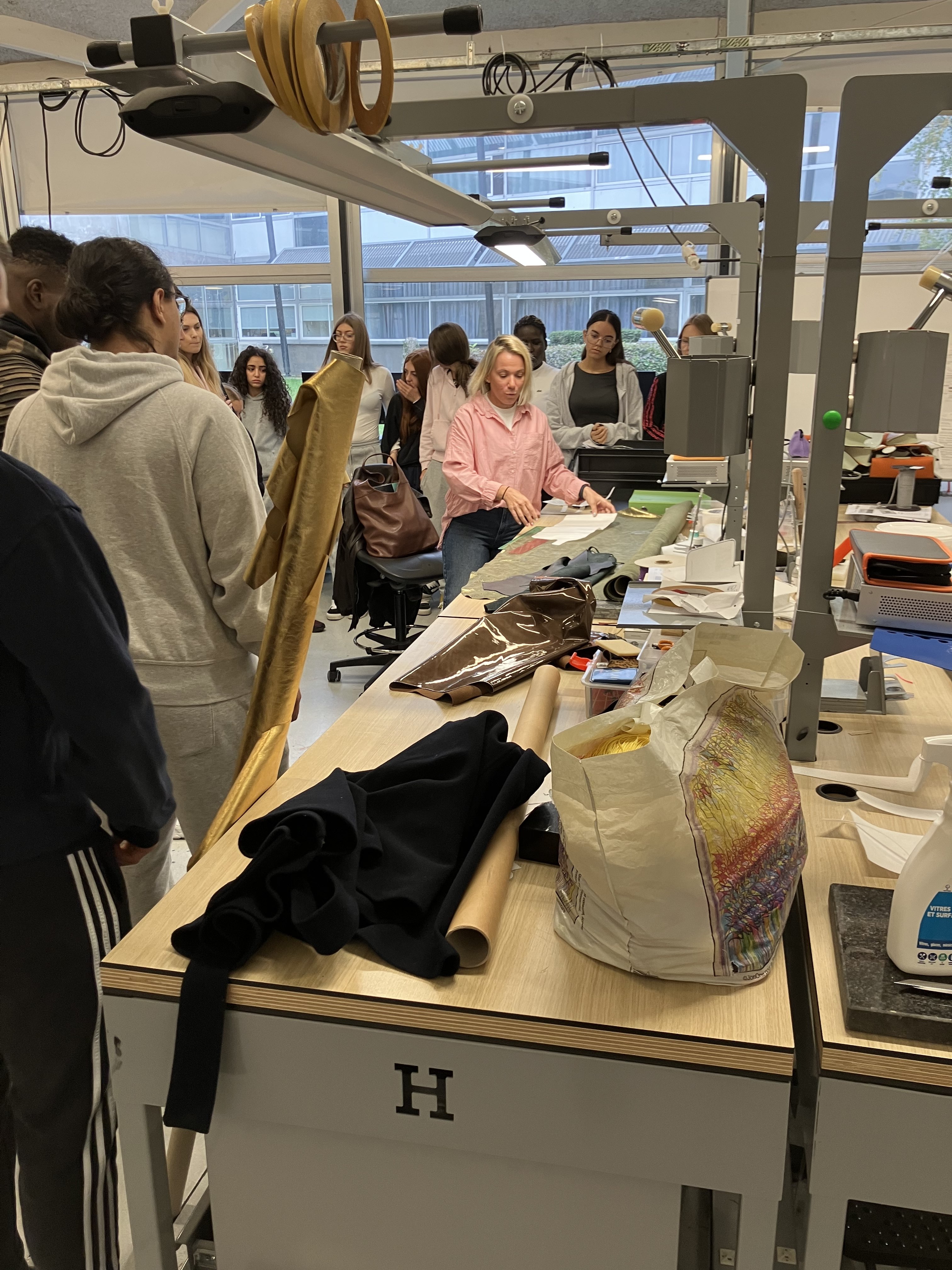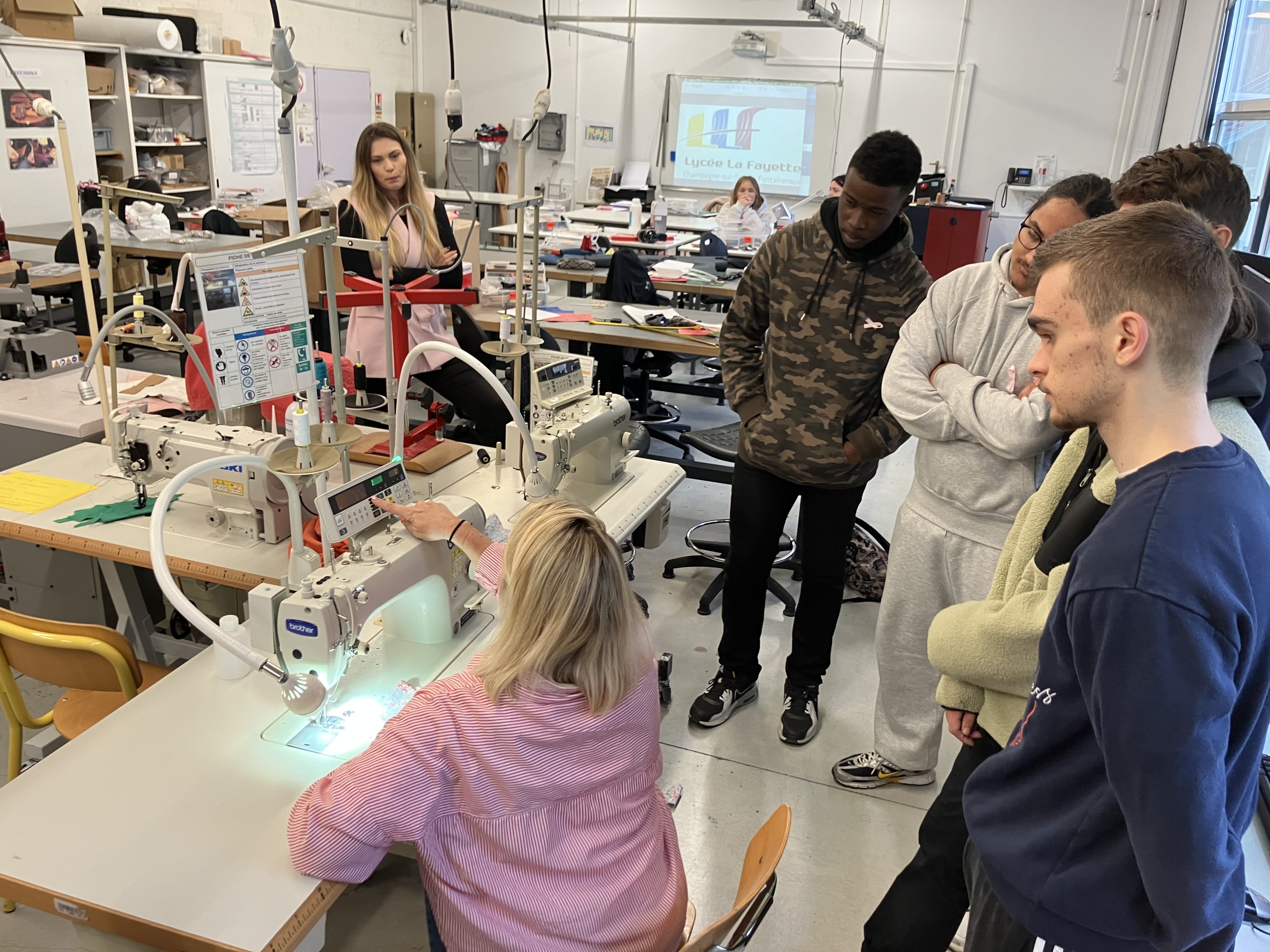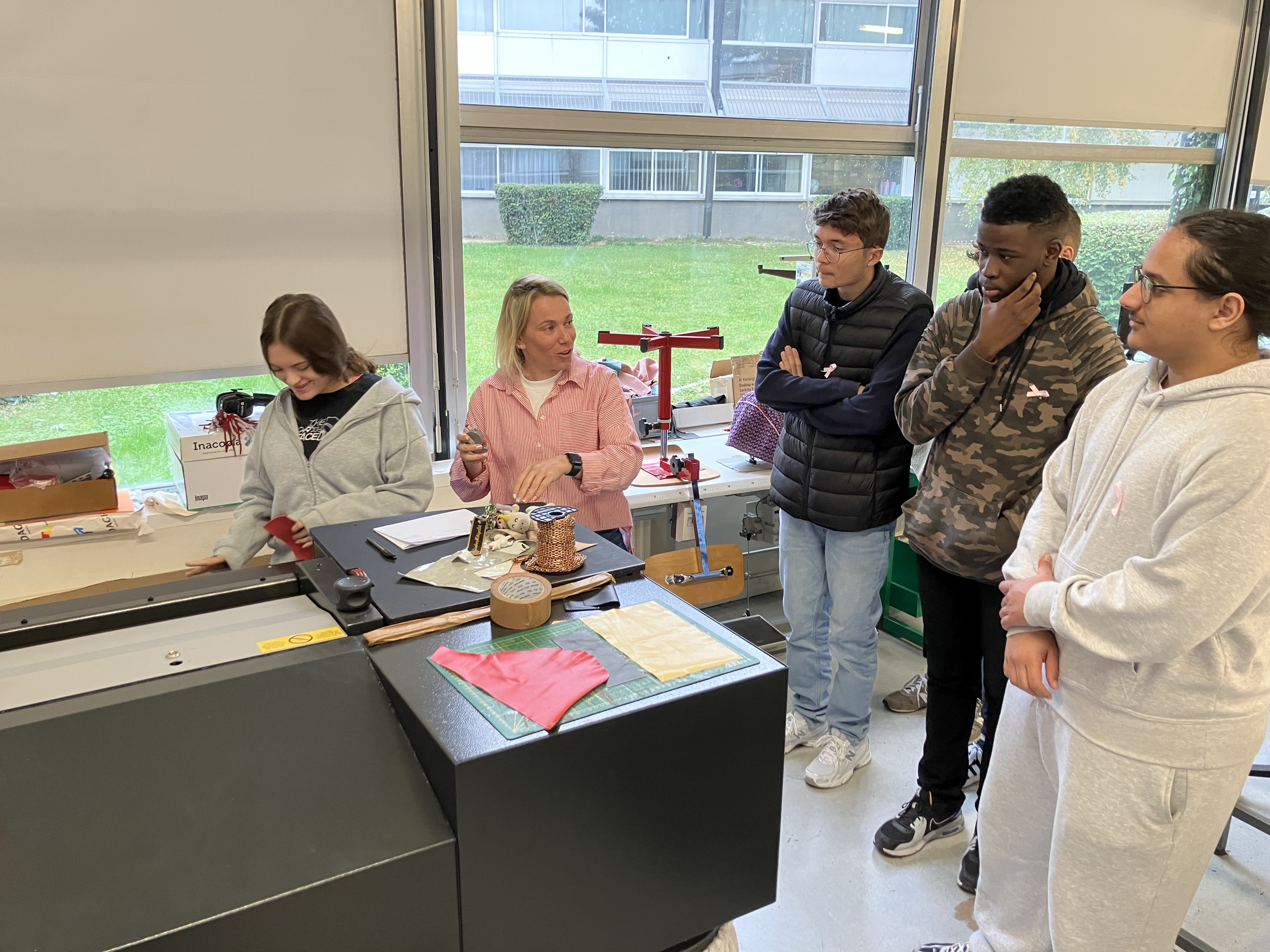 Le mardi 14 octobre, Mme Duez-Broslawski et Mme Léa Buchmuller ont accueilli cinq étudiants de BTS Électrotechnique 2e année participant au concours cette année. Après la présentation du projet et la remise du marteau, les élèves de seconde et de première ont présenté leur atelier de maroquinerie, leurs machines de découpe et d’assemblage ainsi que leurs réalisations.