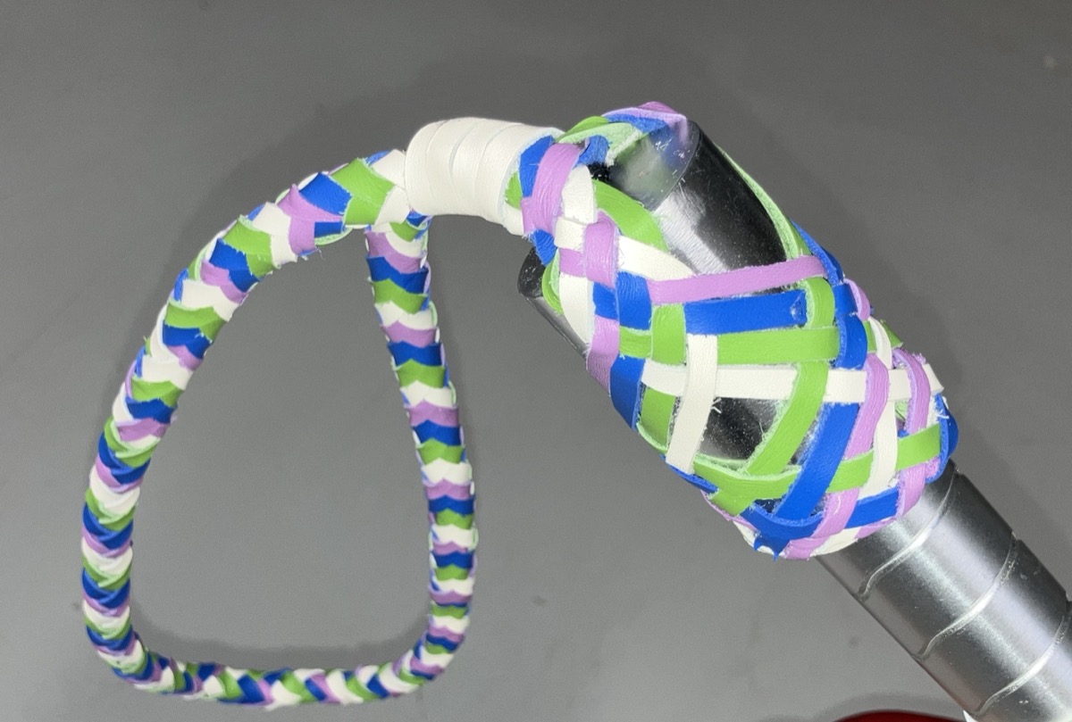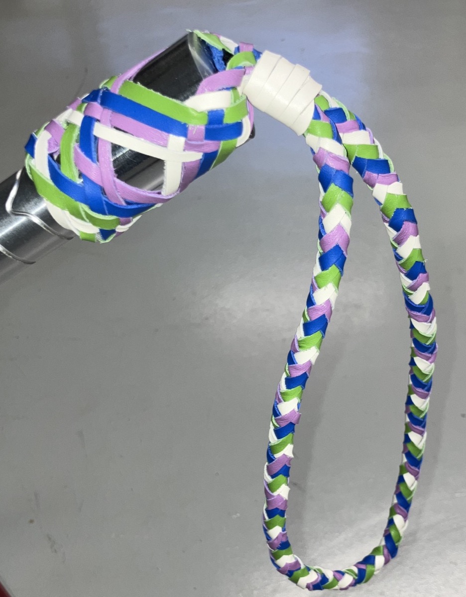Les élèves de seconde et de première MCM, encadrées par Mme Duez-Broslaxski et Mme Léa Buchmuller, se sont pleinement investies dans la création d’une dragonne en cuir sur mesure, aux couleurs du lycée La Fayette, ainsi que dans la réalisation de l’entournure du manche du marteau de la mascotte.